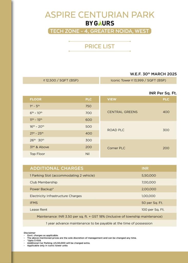 Gaur Aspire Centurian Park Price List & Payment Plan